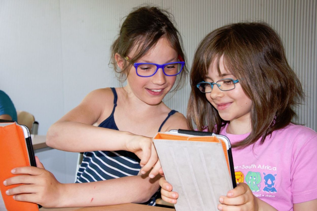 Die Kinder staunten über die große Zahl auf dem symbolischen Scheck und freuten sich gemeinsam mit den Erwachsenen über die Möglichkeit, das E-Learning mit den Tablets weiterführen zu können.
