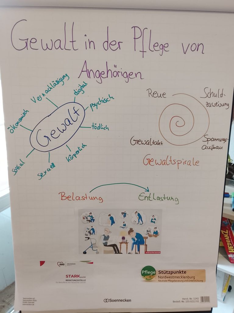 Zum Einstieg ging es um die Frage, was überhaupt als Gewalt gilt und welche Formen sie annehmen kann. Auch die möglichen Folgen für Betroffene wurden thematisiert. Im weiteren Verlauf standen Belastungsfaktoren in der Pflege im Mittelpunkt, die zu Gewalt führen können.