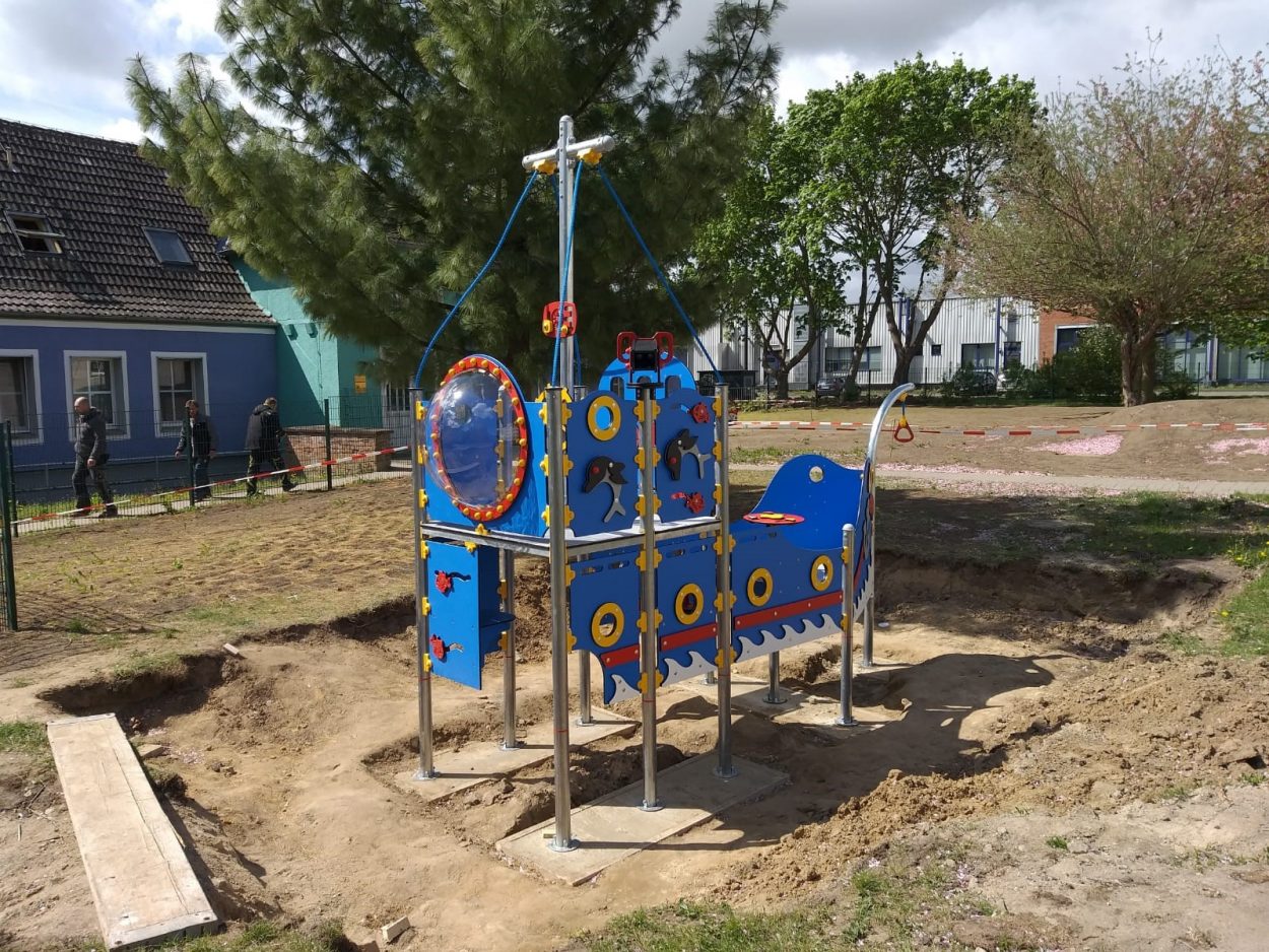 Überall sprießt und blüht es zurzeit in der Natur. Nachdem der Boden frostfrei ist, arbeiten unsere Kollegen an der Gestaltung des Vorplatzes unserer Kita „Emil-Grünbär-Haus“. Ein neuer Zaun fasst nun das Außengelände ein. Neuer Mutterboden wurde auf den Flächen vor dem Eingang eingearbeitet, ein Kletterhügel wurde aufgeschüttet und Rasen gesät. Ganz neu ist das Kinderspielschiff auf der linken Seite vor dem Eingang. In Kürze werden die Wendorfer die Grünbär-Kinder auch vor dem Haus fröhlich spielen sehen.