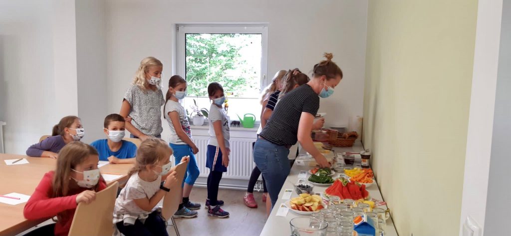 Beim „Klimafrühstück“ wurden die Schülerinnen und Schüler auf greifbare Weise an das Thema Klimawandel herangeführt. Am Beispiel des täglichen Frühstücks konnten die Zusammenhänge zwischen dem Konsumverhalten und dem Thema Klimaschutz beleuchtet werden. So erarbeiteten die Kinder z. B. Transportwege von verschiedenen Lebensmitteln bis auf unseren Tisch.