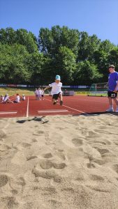 Die Kinder mussten sich in den Disziplinen 30m Lauf, Weitsprung und Ballwurf beweisen. Alle Kinder erzielten bei strahlendem Sonnenschein großartige Ergebnisse und waren mit Spaß dabei.