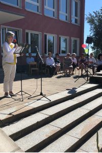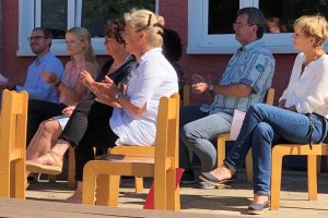 Herzlich willkommen, liebe Erstklässler, hieß es am Samstag bei bestem Wetter. Wegen der Auflagen zum Gesundheitsschutz hätte die Einschulungsfeier bei schlechtem Wetter ausfallen müssen, insofern waren alle sehr froh und sehr dankbar, dass die Kinder diesen besonderen Tag in ihrem Leben genießen konnten. Das Programm gestaltete in diesem Jahr das Schulteam zum ersten Mal selbst und stand seinen Schülern und Schülerinnen im Tanzen, Singen und Gedichtaufsagen in nichts nach.