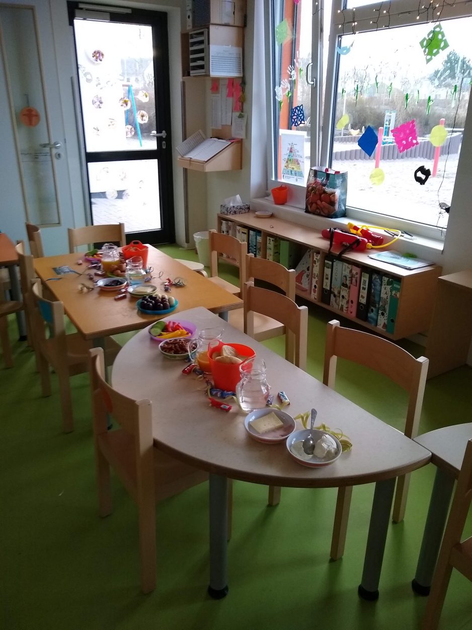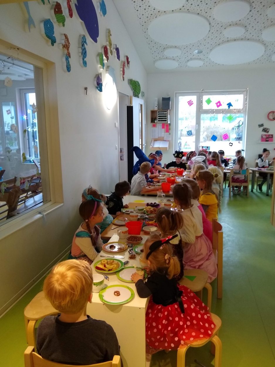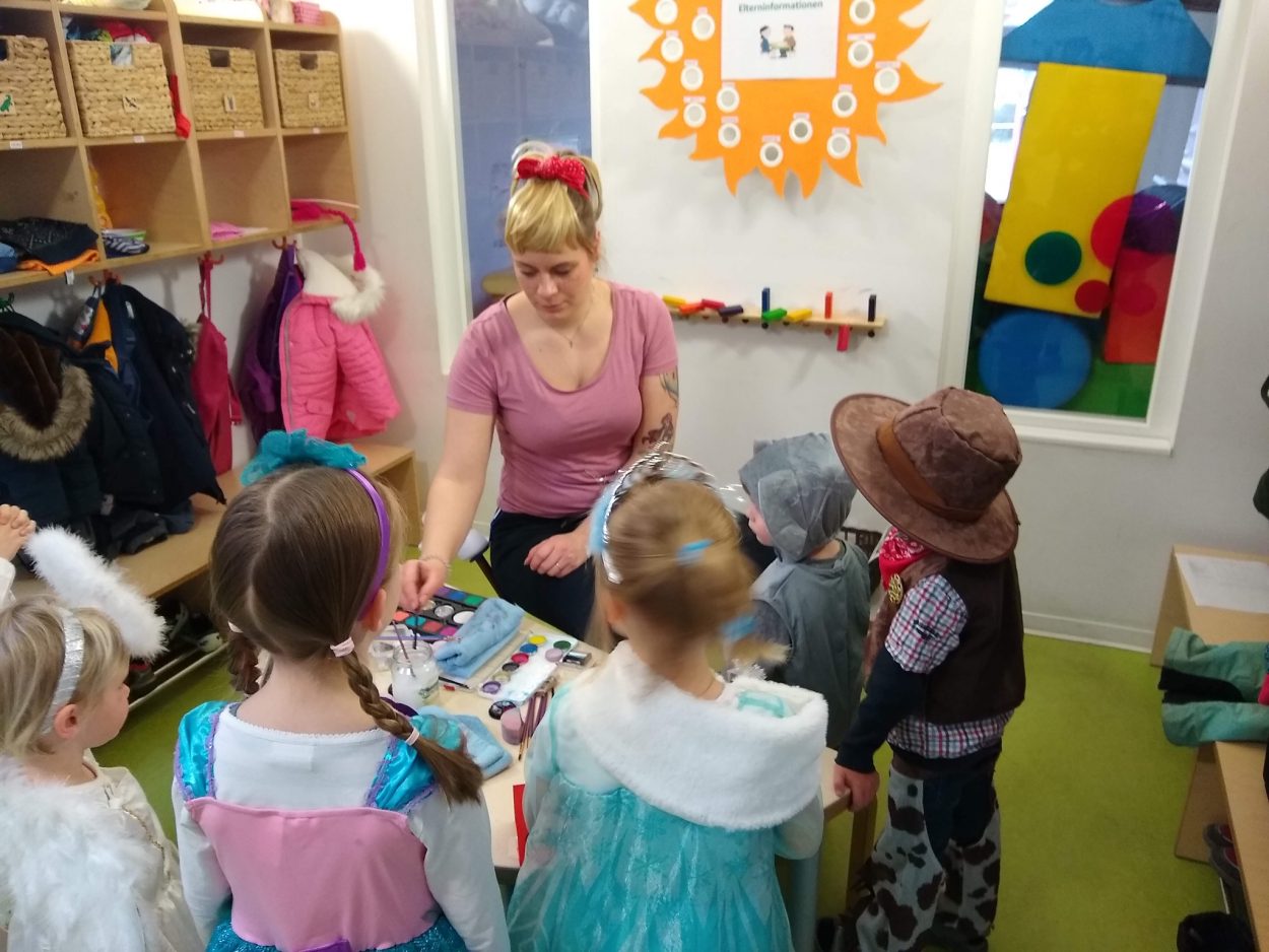 Viel Aufregung bei den Kleinen Seeräubern am heutigen Morgen. Statt den zahlreichen Kindern kamen heute Prinzessinnen, Polizisten, Piraten, Bauchtänzer, Tiere jeder Art … in die Kindertagesstätte. Schon gestern wurde viel über das heutige Faschingsfest gesprochen, denn der Sportraum und die Krippenräume wurden fleißig geschmückt. Die verschiedene Kostüme wurden besprochen und die Schminkstation aufgebaut, sodass direkt heute Morgen um sieben Uhr losgefeiert werden konnte. Dank der tollen Eltern, die so zahlreich Brötchen, Croissants, Obst, Gemüse, Süßigkeiten … mitgebracht haben, dürfte jetzt auch kein Magen mehr knurren. Nun beginnt der Spaß mit Fotoshooting, Tanz und Musik in der Sporthalle und den Krippenräumen statt.