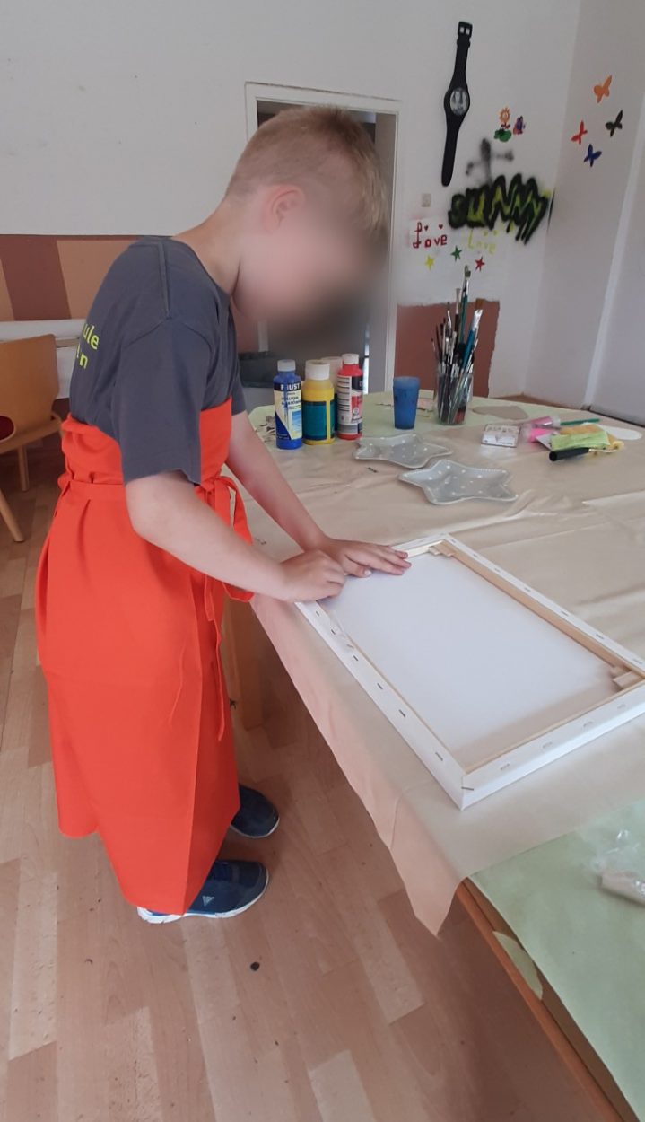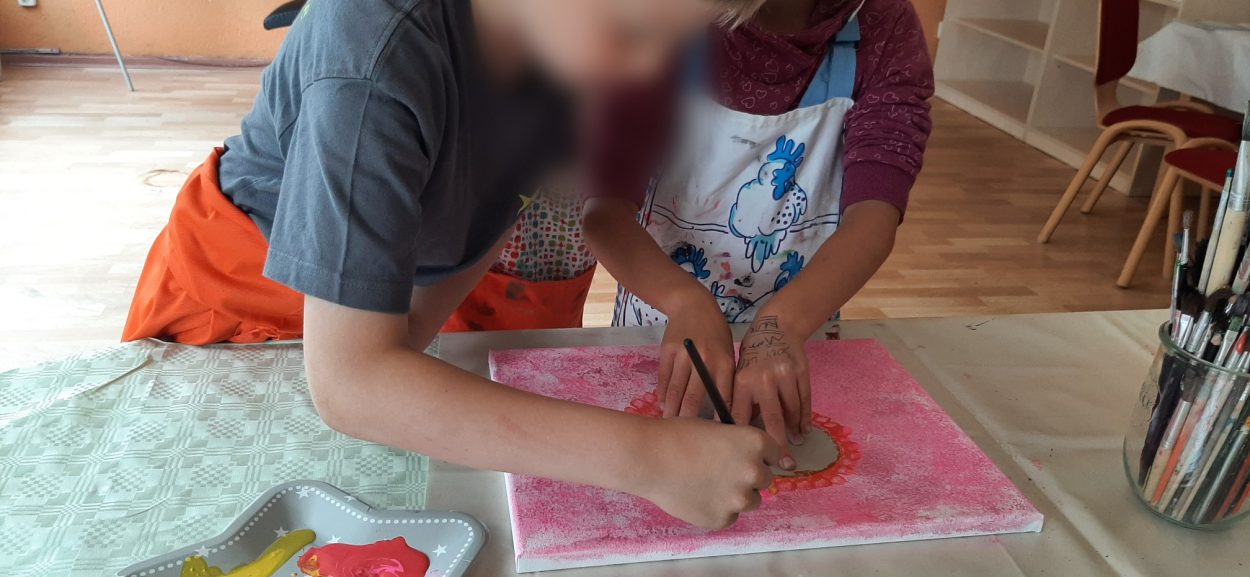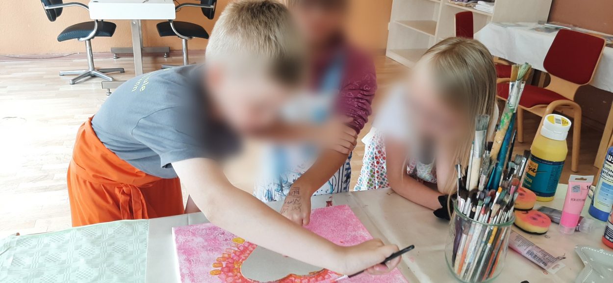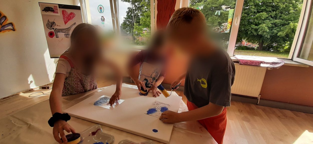 In den ersten Ferienwochen entstanden kreative Ideen, die gemeinsam umgesetzt wurden und nun den Flur im Bürgerhaus verschönern.