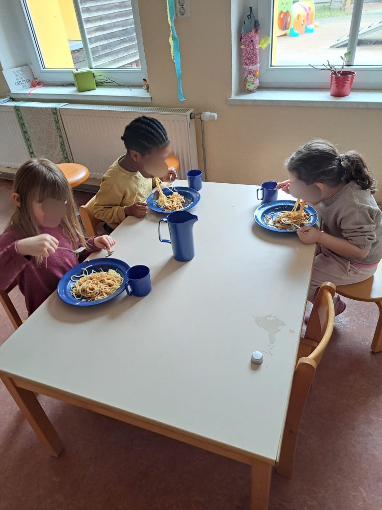 Am Ende wurde das selbst gekochte Essen natürlich auch gemeinsam genossen. Die Spaghetti mit Bolognese haben allen gut geschmeckt.