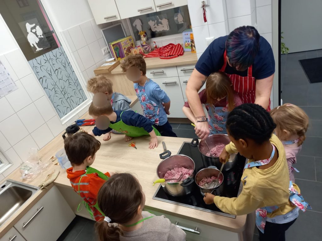 Nachdem der Plan feststand, haben die Kinder die benötigten Lebensmittel selbst eingekauft. Anschließend ging es gemeinsam in die Küche.