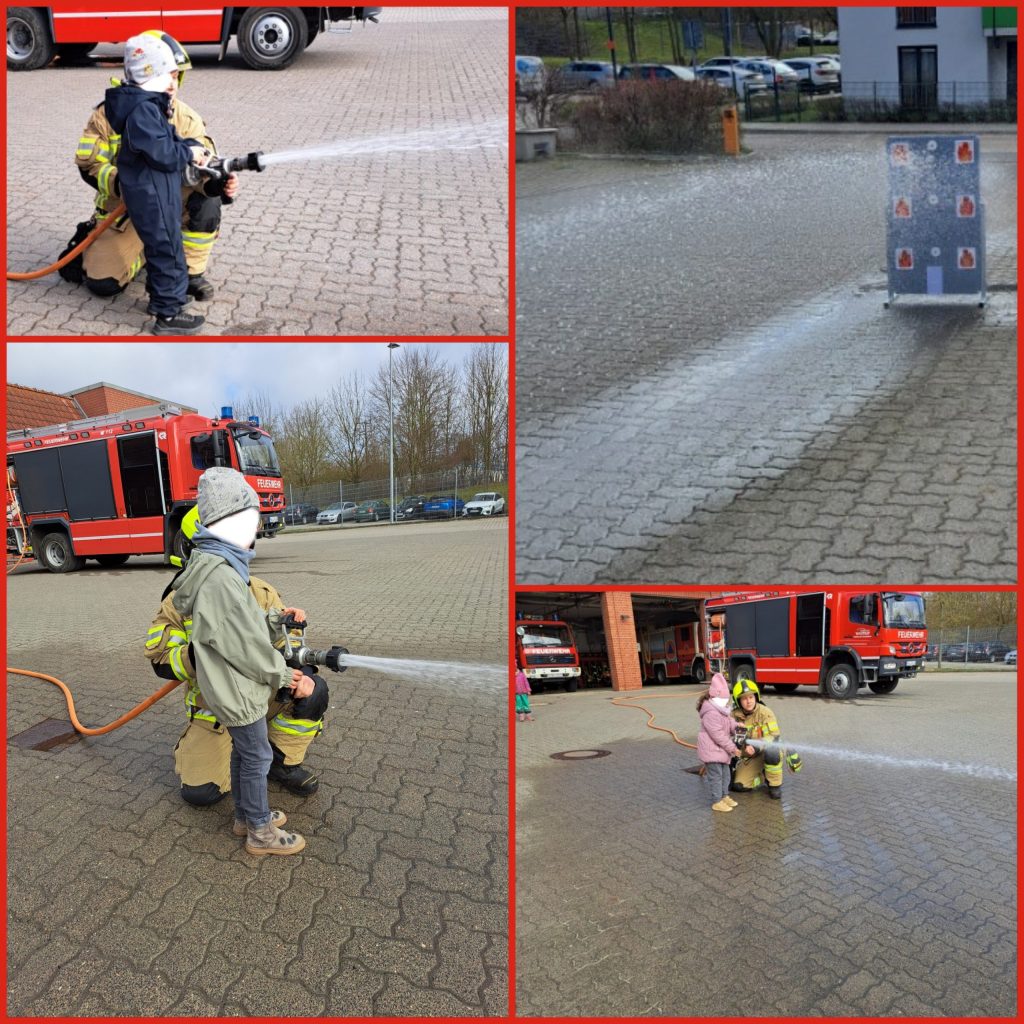 Besonders spannend war für uns das „Löschen“ eines gestellten Brandes. Mit dem Strahlrohr in der Hand haben wir uns kurz wie echte Feuerwehrleute gefühlt.