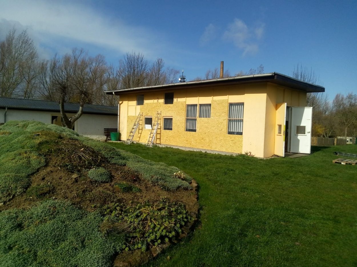 Vor dem Start in die neue Saison ist das Team um Herrn Kiesewetter fleißig dabei, den Pavillon, der als „Grünes Klassenzimmer“ dient, aufzuarbeiten. Nach den Reparatur- und Dämmungsmaßnahmen wird das Gebäude eine neue ökologische Lattenverkleidung erhalten. Dazu AWO-Geschäftsführer Matthias Koch: „Mit der aktuellen Sanierung und Instandsetzung des Grünen Klassenzimmers leisten wir den nächsten Beitrag zum Erhalt der Attraktivität des Ökologischen Schulortes Wismar. Überdies hat jüngst die Zufahrt zum 33.000 qm großen Gelände ein neues Tor erhalten und es wurden die Sanitärbereiche im Sozialgebäude erneuert. Einen großen Beitrag leisten hierbei jeweils unsere eigenen Beschäftigten der PROTINUS und der AWO Wismar. Für diesen engagierten Einsatz sei ausdrücklich ein großes Dankeschön ausgesprochen.“