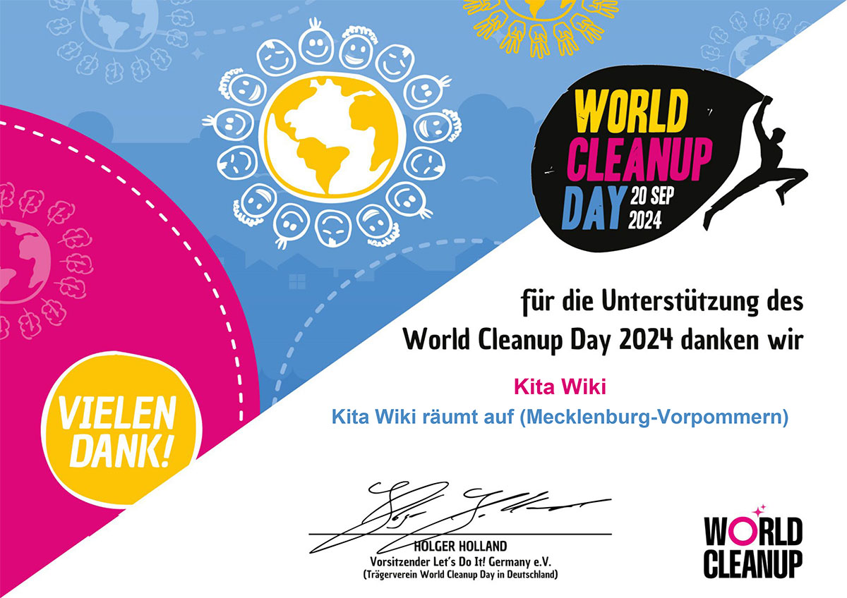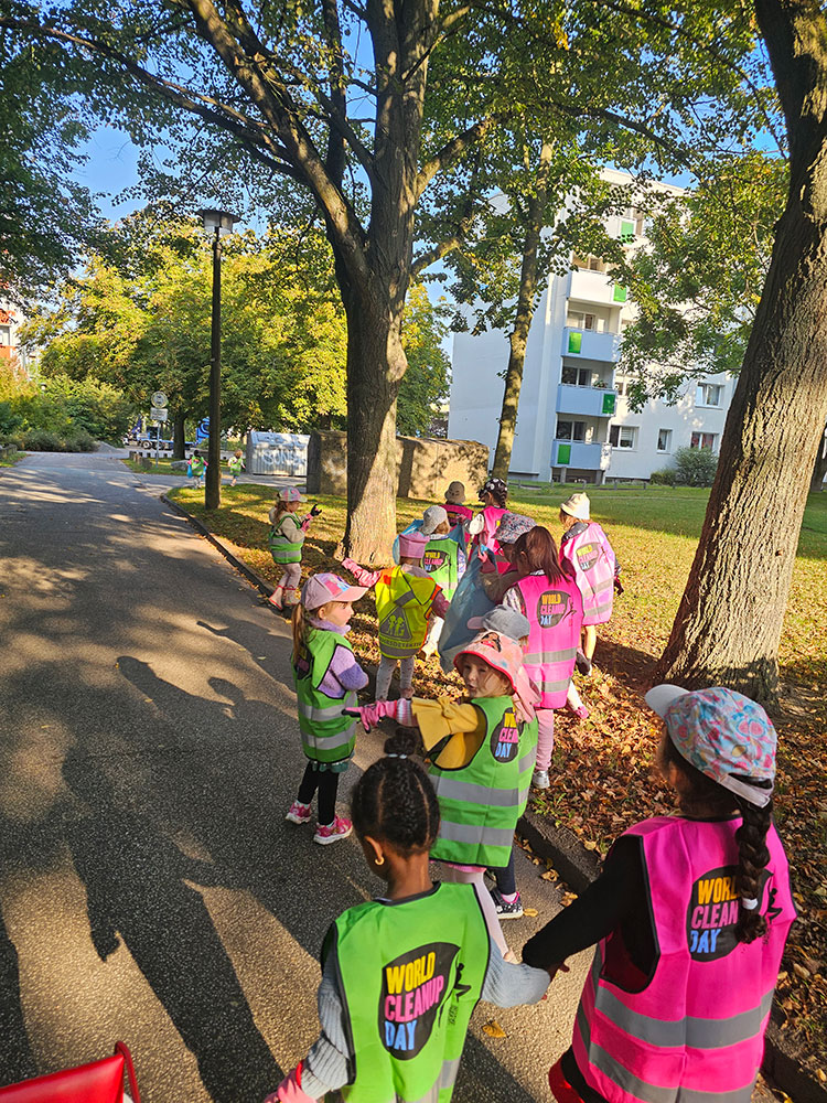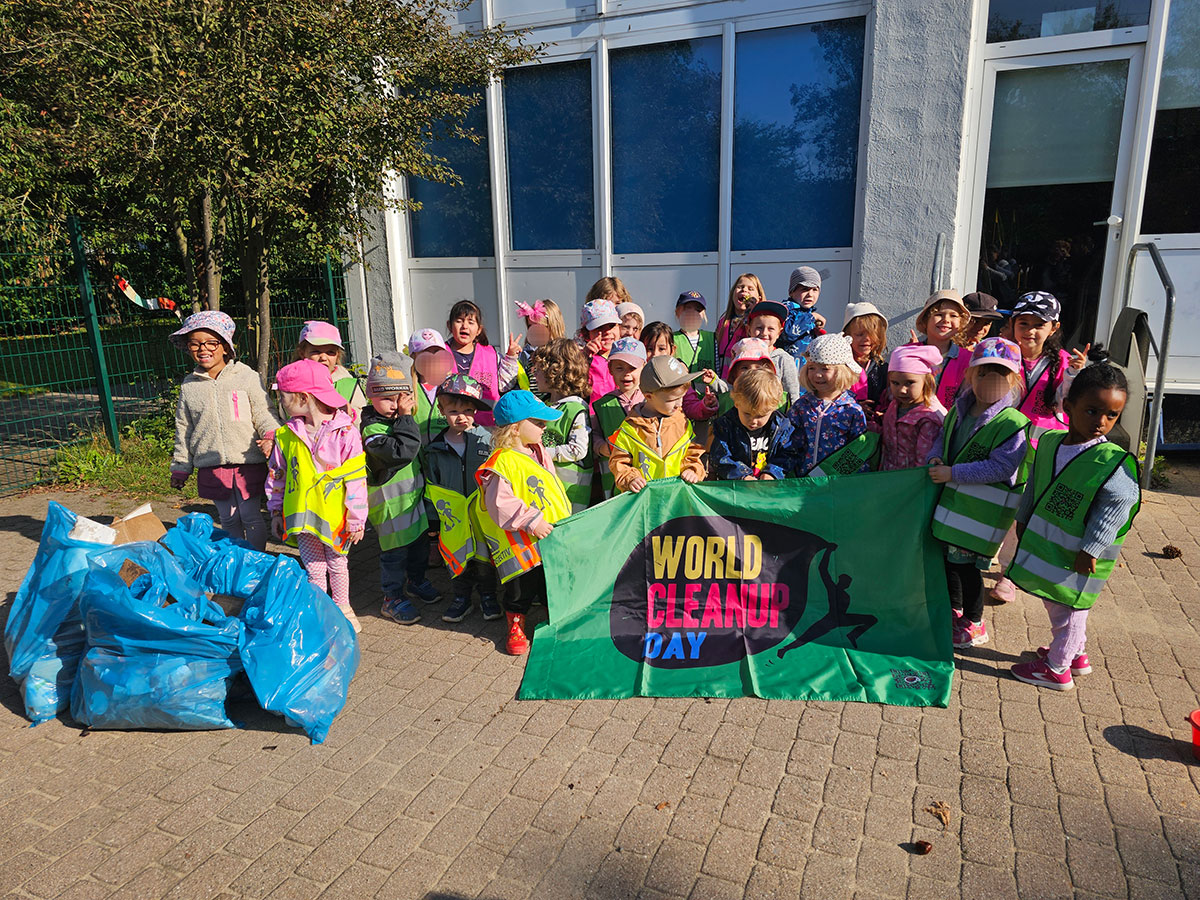 In diesem Jahr nahmen die Kinder und Erzieher der AWO-Kita Wiki aktiv am World Clean-Up-Day teil. Ausgerüstet mit Handschuhen, Warnwesten und Müllsäcken, machten sie sich auf den Weg in die Umgebung der Kita. Leider brauchten sie nicht weit zu gehen, um die ersten Abfälle zu entdecken. Mit vollem Einsatz befreiten die Kinder und Erzieher die Nachbarschaft von achtlos entsorgtem Müll. Auf dem kurzen Weg zum nahegelegenen Spielplatz sammelten sie zahlreiche Müllsäcke voller Zigarettenstummel, Papier- und Plastikreste – sogar ein paar Flip-Flops waren dabei. Erschreckend, aber auch ein starkes Zeichen: Insgesamt kamen rund 16 Kilogramm Müll zusammen, die nun glücklicherweise nicht mehr die Natur belasten.