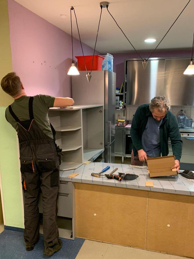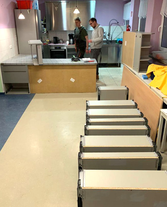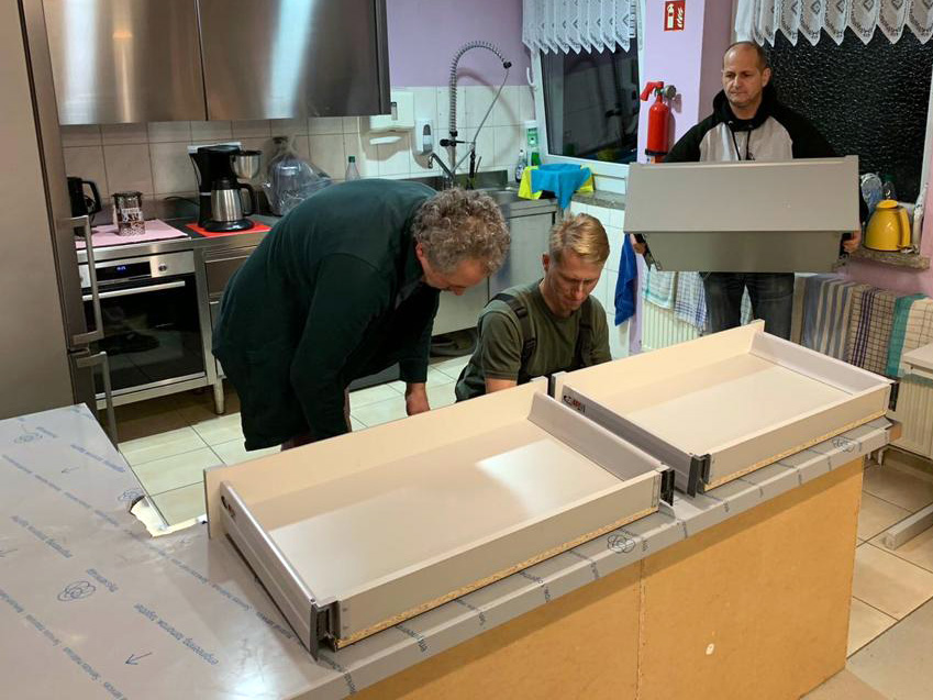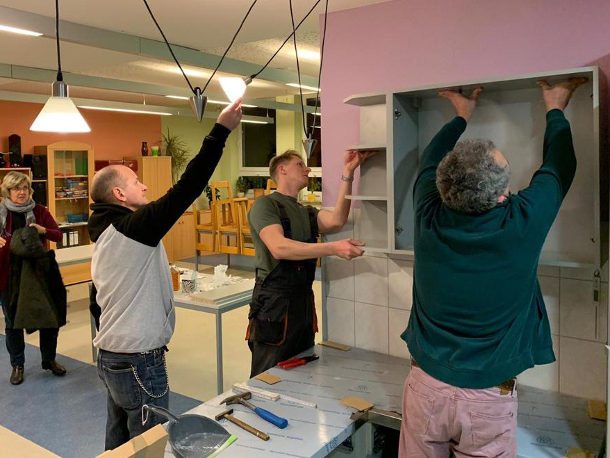 Am Freitag, 17.01.2020 installierten die engagierten Eltern der Freien Schule Wismar unter Federführung des Vorsitzenden des Fördervereins, Herrn Kieslich, den zweiten Teil der neuen Küche. Aus den Erlösen der Aktion „Förderherzen“ der Stadtwerke Wismar konnten ein kindgerechter Tresen, Schränke mit modernen Auszügen und Edelstahloptik aufgebaut werden.