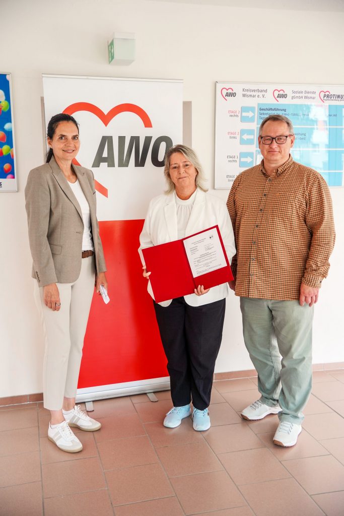 Am 25. August 2025 überbrachte Staatssekretärin Ines Jesse stellvertretend für Sozialministerin Stefanie Drese einen Förderbescheid in Höhe von 50.000 Euro an unsere Geschäftsführerin Frau Naß und den Vereinsvorsitzenden Herrn Tilo Gundlack. Große Freude herrschte am 11. Februar 2026 bei den Verantwortlichen der AWO Wismar, als nun der neue Bus ausgeliefert wurde.