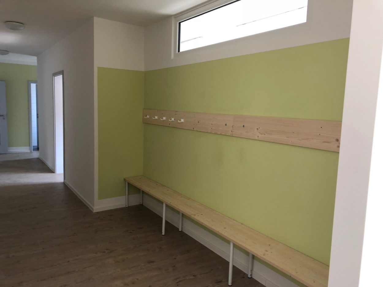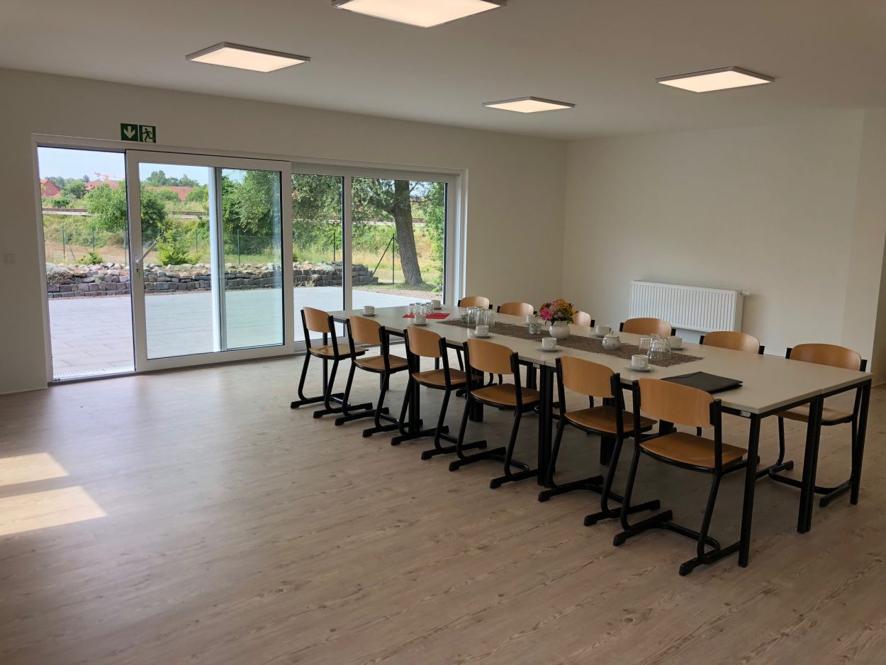 Die alte Baracke 1 im ÖSW wurde in 3monatiger Bauzeit komplett saniert. Der ehemalige Veranstaltungsraum ist nun mehr als doppelt so groß, hell und freundlich gestaltet und lädt die Besucher des „Ökologischen Schulortes Wismar“ zu außerschulischem Unterricht und thematischen Veranstaltungen rund um die Themenwelt Natur, Ökologie und Umwelt ein. Das Gebäude erhielt neue und zusätzliche Fenster, eine riesige Außenterrasse verbunden durch lichtdurchflutete Schiebeelemente, moderne Büros für die Einrichtungsleiterin und die Anleiter, komplett neue Sanitäranlagen für Personal, Gäste und Kinder sowie einen hellen, einladenden Eingangsbereich. Neue Fußböden und Decken, moderne Lampen, eine Kindergarderobe und in Kürze eine Kinderlernküche vervollständigen die neue Einrichtung.