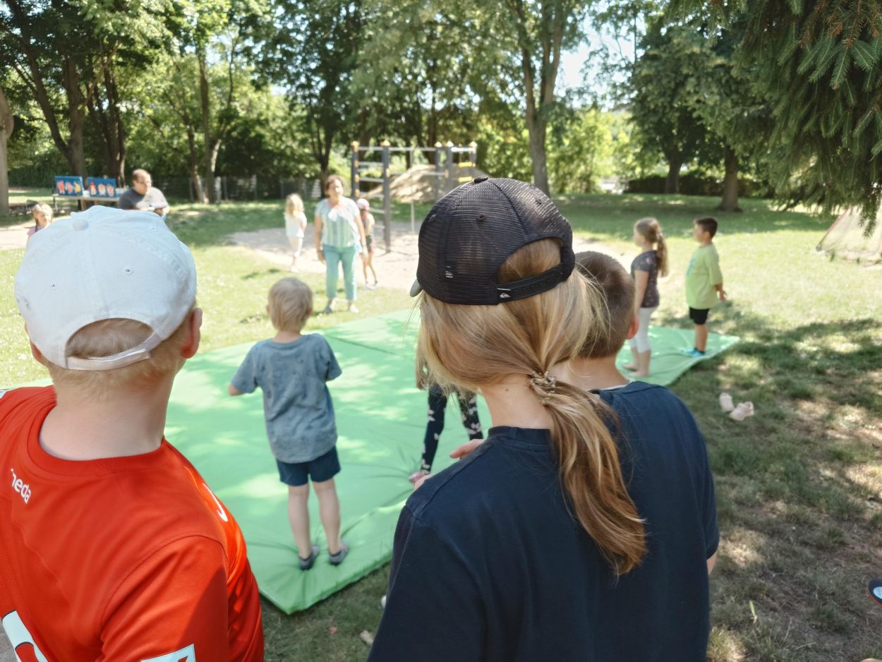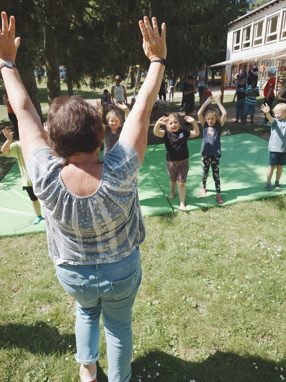 Die Familien erwartete ein abwechslungsreicher Nachmittag mit vielen Mitmach-Stationen: Eine Hüpfburg, Kinderschminken, das kreative Bemalen von Gipsfiguren, ein Glücksrad, Zielwerfen und nicht zuletzt die tolle Showeinlage unserer Turn-AG, die das Fest offiziell eröffnete.