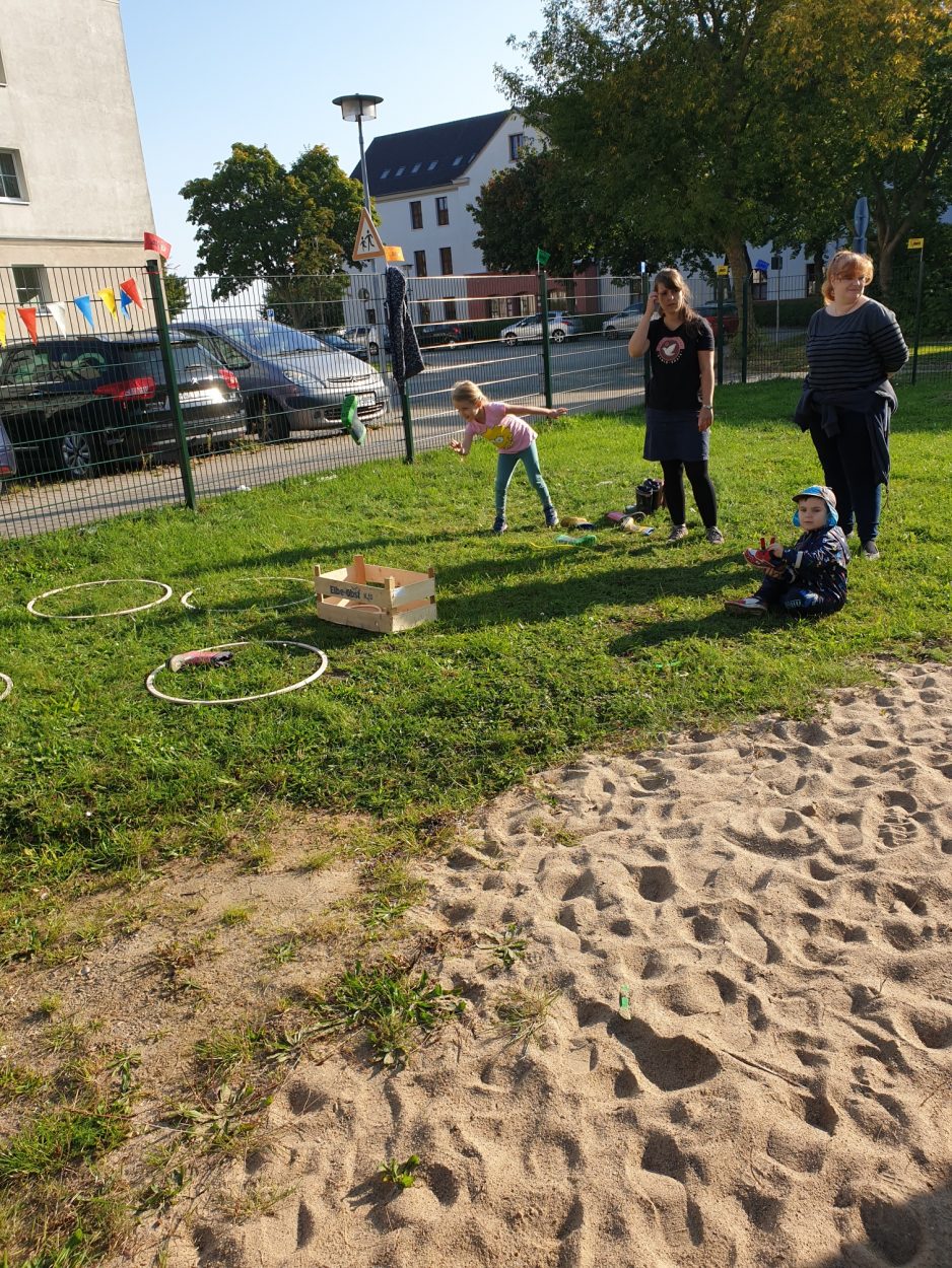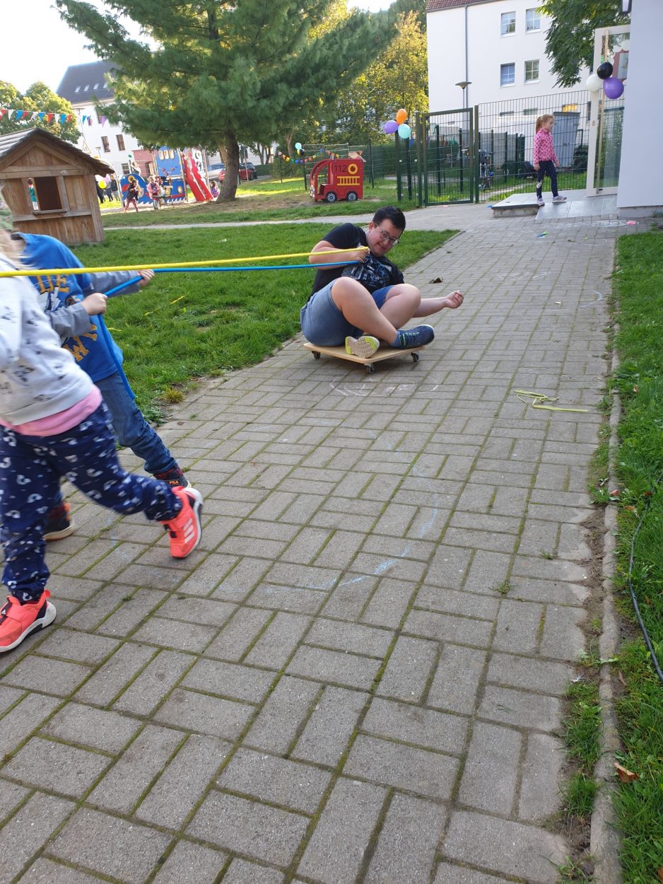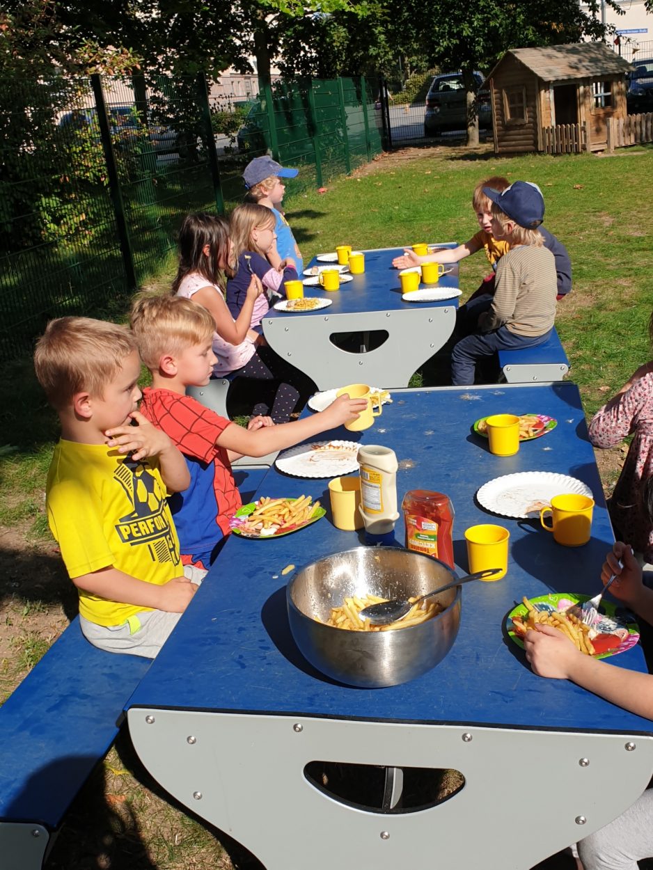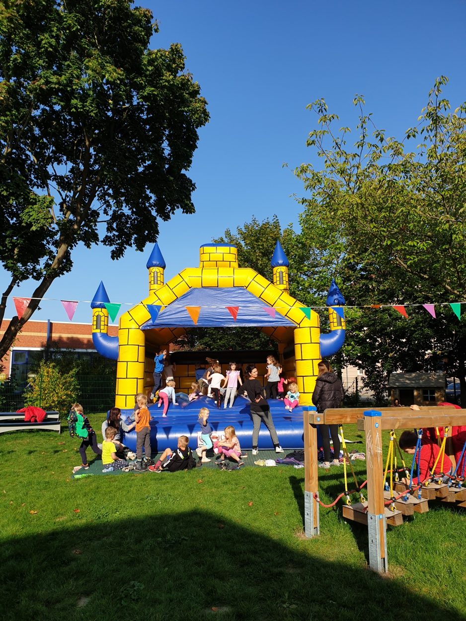 Viele Stationen haben die Kinder entdecken können. Zwischen Sackhüpfen und Schubkarrenrennen war das Highlight natürlich die Hüpfburg. Unser Fest wurde abgerundet mit Pommes und Bratwurst.