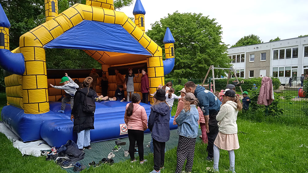 Die Hüpfburg, die auf der Wiese hinter dem Parkplatz aufgestellt wurde und Stationen wie Kinderschminken oder Enten angeln, bereitete vor allem den Kleinen viel Freude.