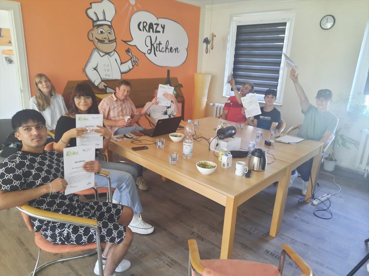 In der letzten Ferienwoche bekamen die Teilnehmer des Sozialen Gruppentrainings ihre Zertifikate vom KoMo-Team überreicht. Jedem Jugendlichen wurden die eingeschätzten Stärken und Kompetenzen vorgelesen, was bei dem einen oder anderen sichtlichen Stolz hervorrief. Die Jugendlichen brachten auf ihre Weise zum Ausdruck, dass ihnen die Kombination aus Berufsorientierung und Freizeitgestaltung gefallen hat. Abgerundet wurde die Übergabe durch einen Ausflug nach Zierow zum gemeinsamen Eisessen mit sportlicher Betätigung und Minigolfspielen.