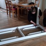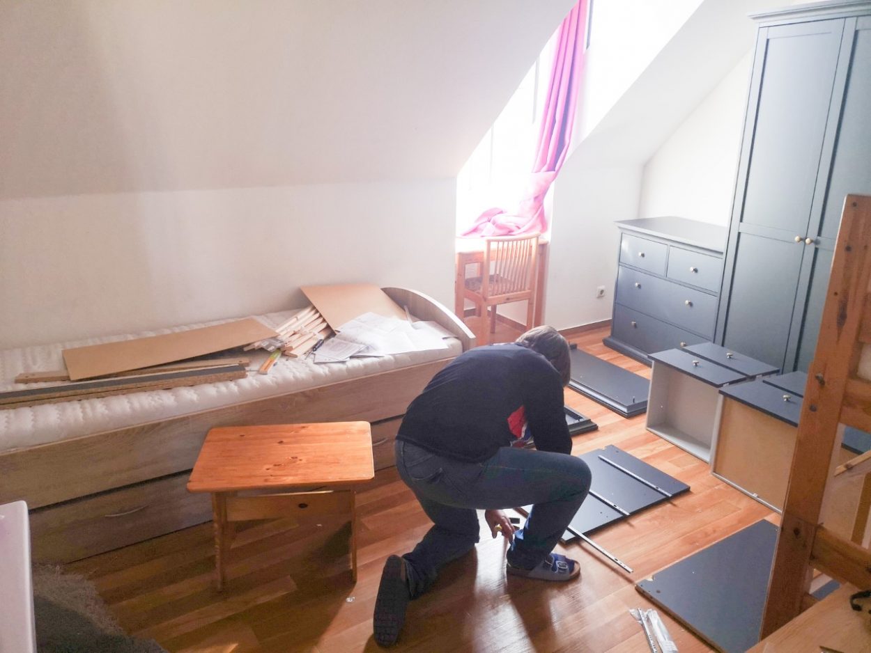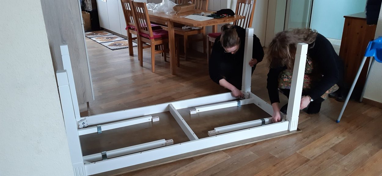 Zu Beginn wurden die alten Schränke und Kommoden sowie der Esstisch mit Stühlen entfernt. Die Mitarbeiterinnen machten sich sogleich daran, die durch die großzügige finanzielle Unterstützung der Glücksspirale neu angeschafften Möbel aufzubauen.