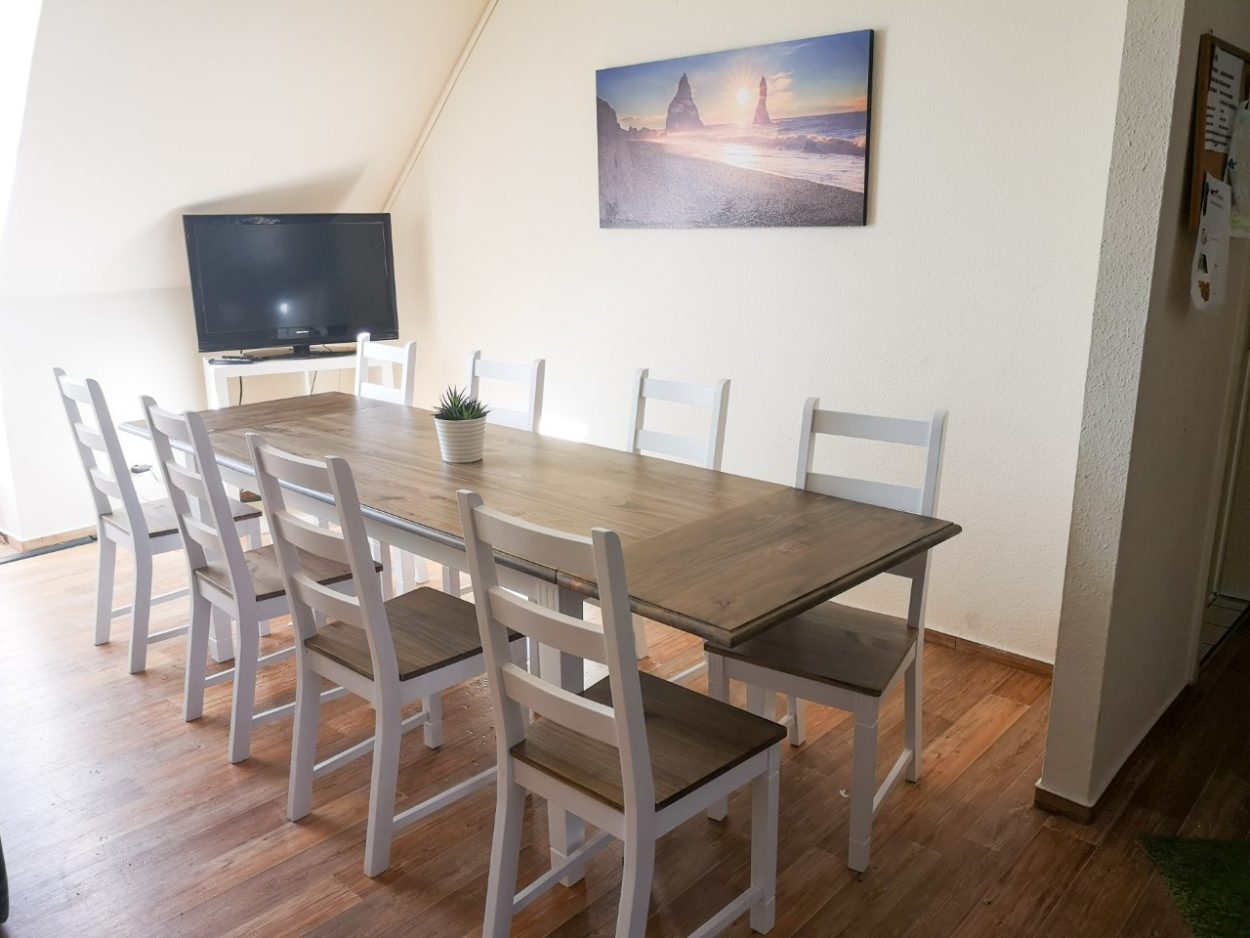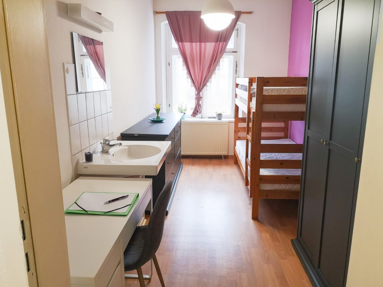 Herausgekommen sind nun gemütliche und komfortable Zimmer mit, wie gewünscht, viel Stauraum und ein Essbereich mit einem großen Tisch, an dem, vor allem bei voller Belegung, alle Bewohnerinnen mit ihren Kindern Platz finden. Ein großer neuer Gefrierschrank ermöglicht den Frauen die Aufbewahrung entsprechender Nahrungsmittel. Auch Lebensmittelspenden können dort als Notfallrationen gelagert werden.