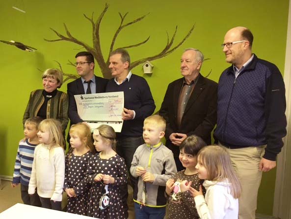 Zu einer Spendenübergabe trafen sich am vergangenen Donnerstag, 26.01.2017, mehrere Vertreter der Wismarer Lions mit der Geschäftsführung der AWO Wismar im ÖSW. Lions-Präsident, Harald Schießer, der Vorsitzende des Lions-Fördervereins, Peter Schmidt-Hahn sowie Lions-Mitglied Bernd Wulff überreichten in diesem Rahmen einen Scheck über 9.300 EUR an den AWO-Geschäftsführer Matthias Koch mit seinem Team. Der Spendenerlös stammt aus dem Verkauf des Wismarer Adventskalenders 2016 der Lions. In diesem Jahr geht der Erlös an das ÖSW, das seit mehreren Jahren für ökologische Bildung von Kindergartenkindern und Schülern im Landkreis steht. Über 7.000 Besucher konnte das ÖSW allein im Jahr 2016 verzeichnen. Mit der Spende sollen ökologische Außenspielgeräte gebaut bzw. angeschafft werden. Kinder aus der Wismarer Kita „WIKI“ bedankten sich stellvertretend für alle Kinder sehr herzlich bei den Lions mit einem selbst gebastelten Präsent. „Mit einer Unterstützung in dieser Höhe haben wir nicht gerechnet und möchten uns umso mehr bei den Wismarer Lions und allen Käufern des Adventskalenders bedanken. Ein großartiges Projekt.“, so Matthias Koch.
