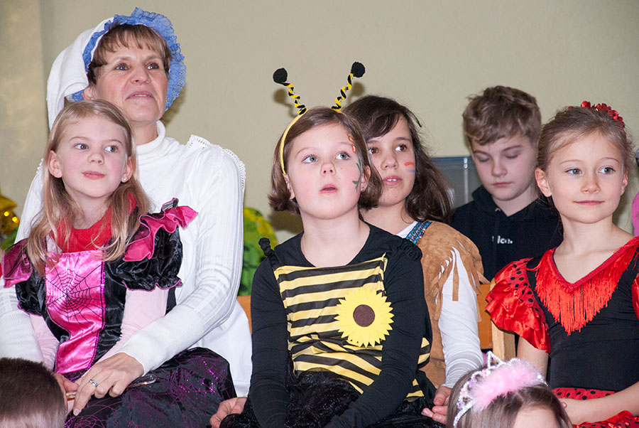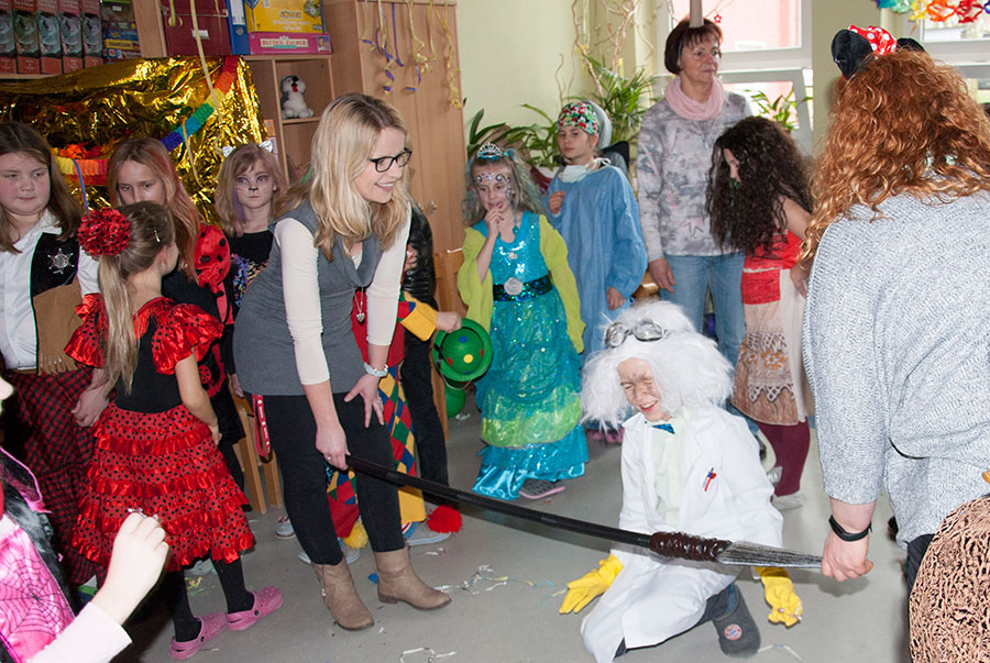 Zum Ausklang des Halbjahres feierten die Grundschüler ihr Faschingsfest. Tatkräftig unterstützten die Eltern der Klasse 4 beim Ausgestalten der Caféteria und beim leckeren Faschingsschmaus. Die 5. und 6. Klasse präsentierte eine Modenschau besonderer Art in englischer Sprache. Die Models führten Kreationen aus Wegwerfprodukten vor. Kleider aus Mülltüten, Schuhe aus Milchverpackungen und Oberteile aus Plastiktaschen waren der Hingucker auf dem Laufsteg. Jeweils zwei Schüler präsentierten einen Walk: einer im Waste-Outfit und einer stellte Material und in englischer Sprache vor. Viel Applaus gab es für dieses Programm. Kinder, Lehrerinnen, Horterzieherinnen und unsere Küchenfee hatten anschließend viel Spaß bei Musik, Tanz und Spielen.